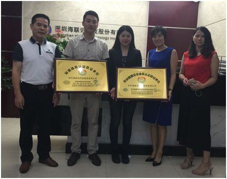 我机构向深圳海联讯科技股份有限公司认证赠送铜牌证书