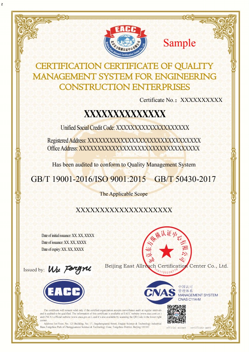 CNAS-QMS英文证书样本(EC9000)