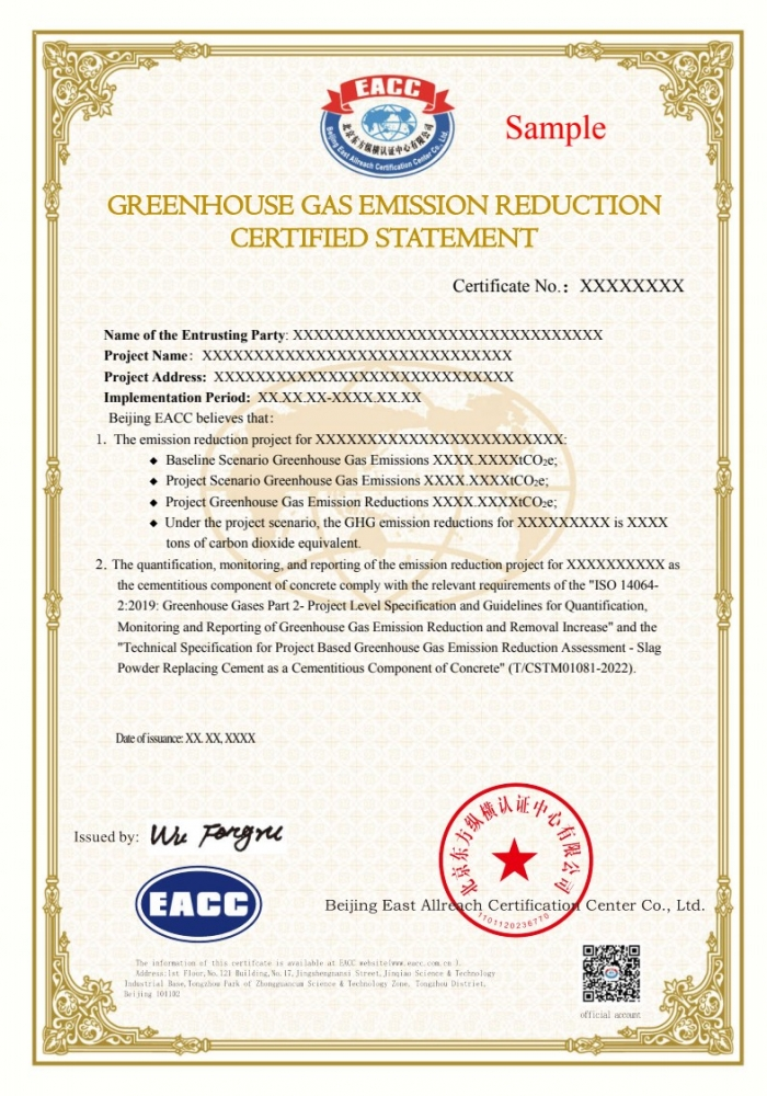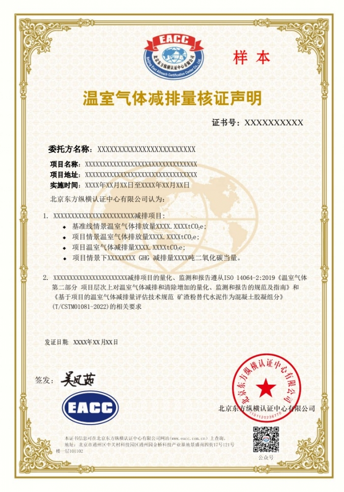 温室气体减排量核证声明样本