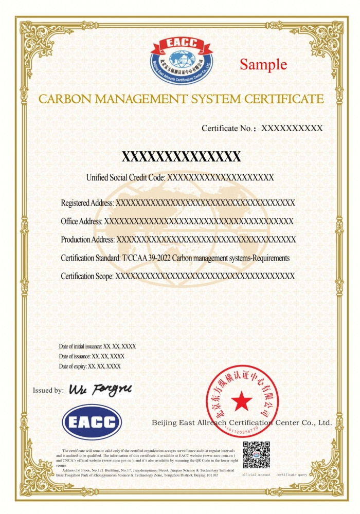 碳管理体系证书样本