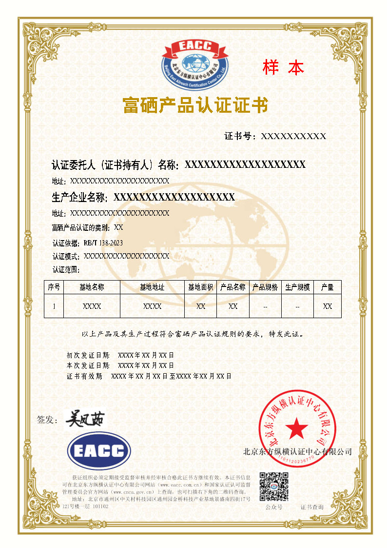 富硒产品证书样本