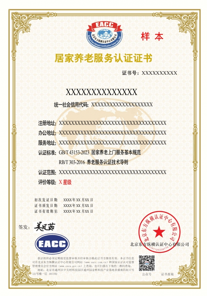 居家养老服务证书样本