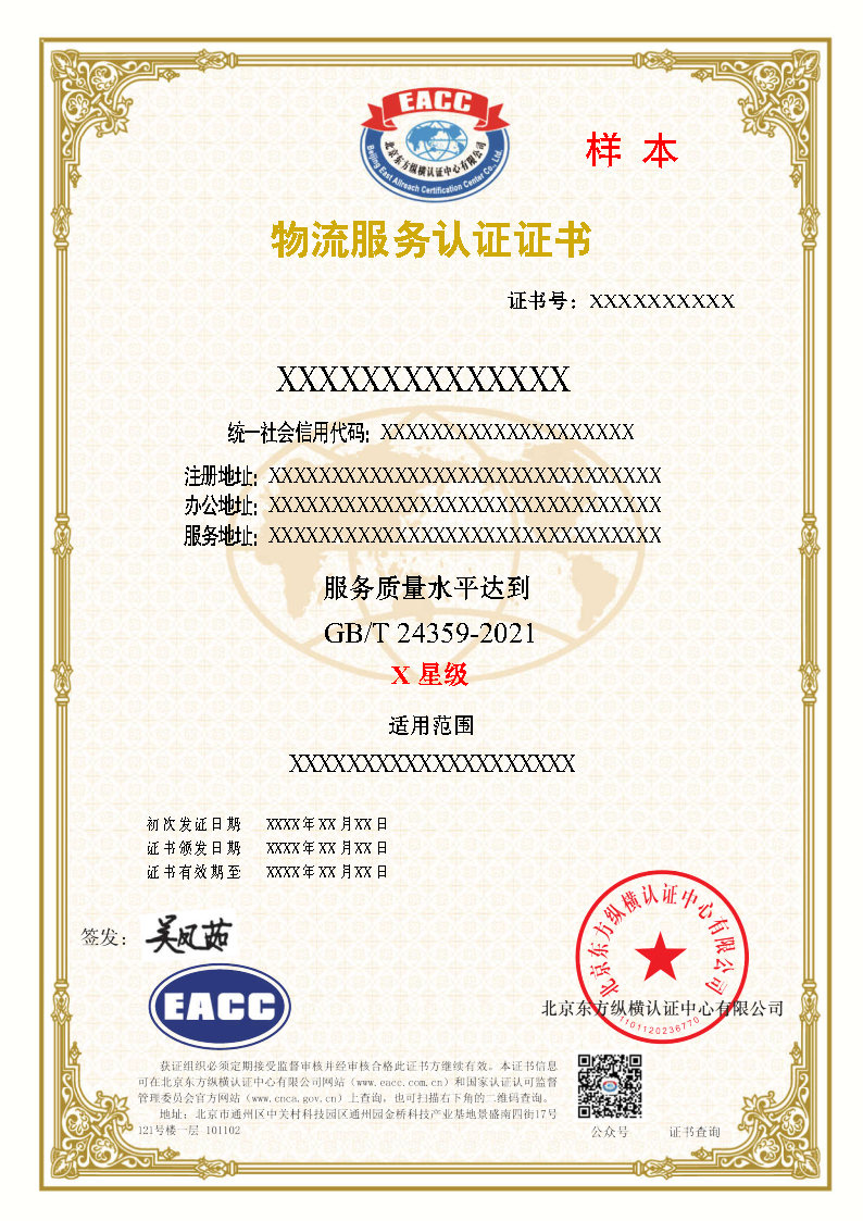 物流服务证书样本