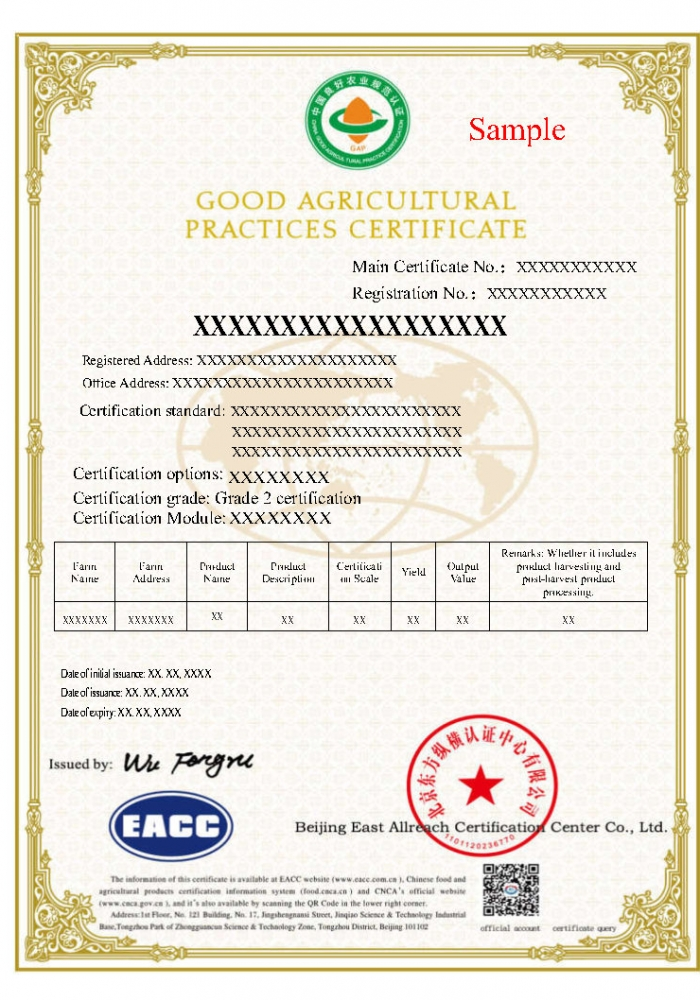 GAP英文证书样本