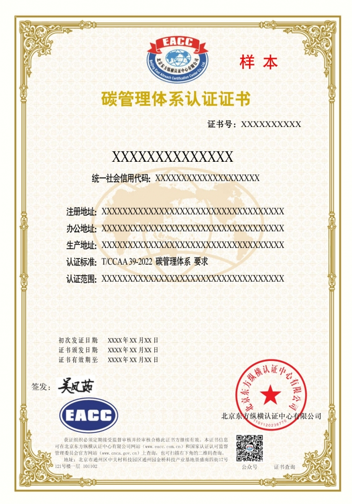 碳管理体系证书样本
