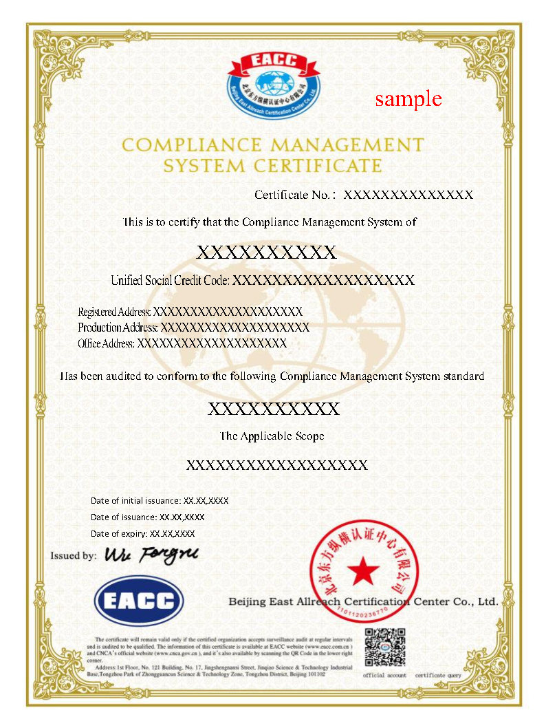 上一篇:合规管理体系中文证书样本