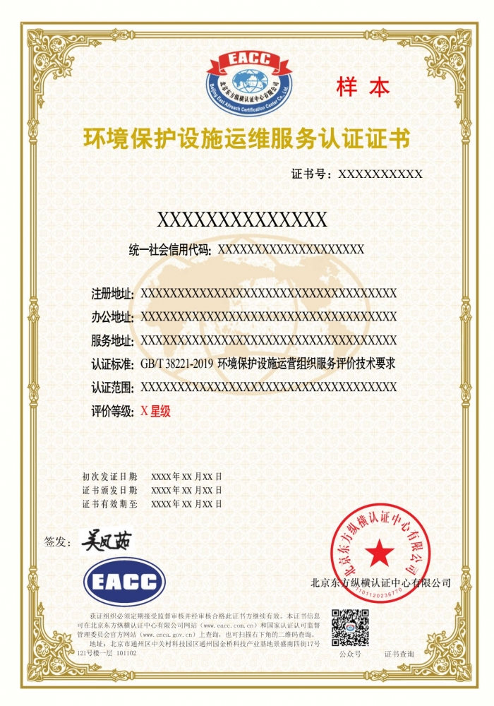 环境保护设施运维服务证书样本