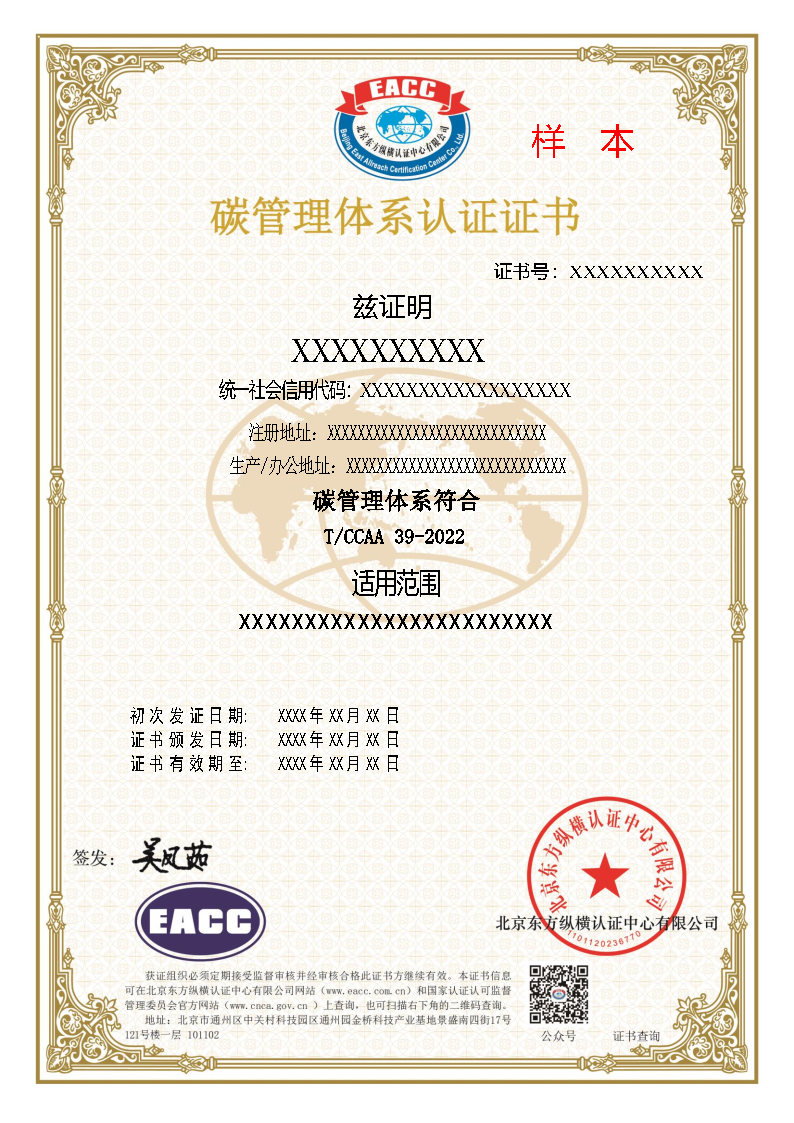 碳管理体系中文证书样本