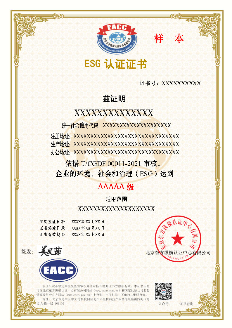 ESG中文证书样本