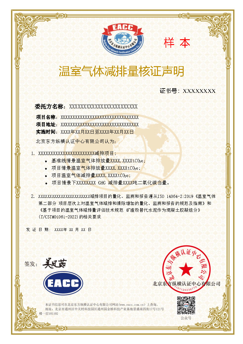 温室气体减排量核证声明中文样本